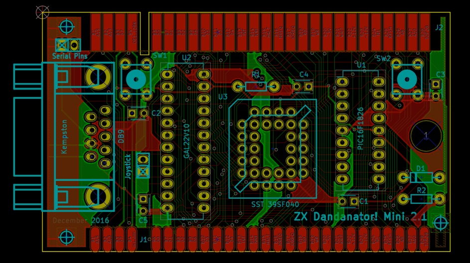 Hardware-wise, the board is quite simple and it only uses three ICs and some passive components. I used KiCad 4.0.2 for Mac for designing the PCB. Thanks Kyp for edge connector footprint!. Routing was done with the free tool FREEROUTER